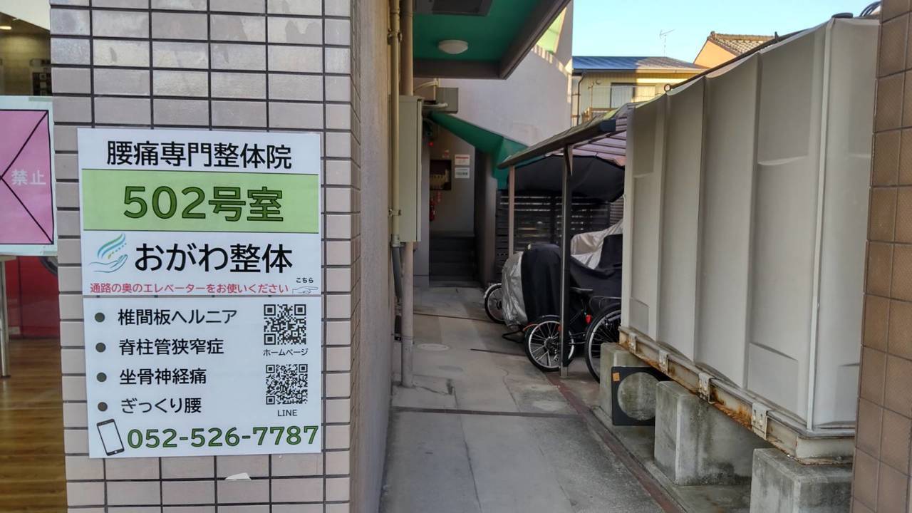 愛知県名古屋市西区のおがわ整体院(旧称:AandK Therapy Studio)は、椎間板ヘルニア・腰痛・脊柱管狭窄症に強い整体院です。